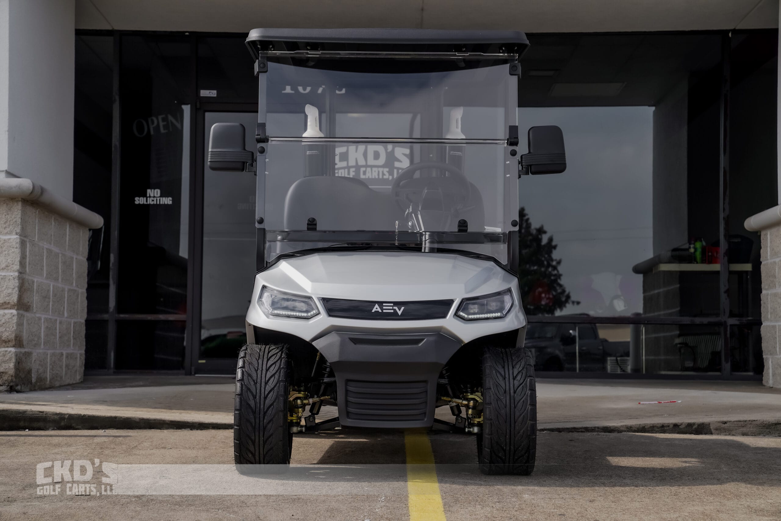 Introducing a brand new, 2024 Advanced EV 2-passenger golf cart and neighborhood cruiser. This stylish vehicle boasts a silver metallic exterior with custom black bolstered diamond-stitched seats. It’s powered by a 48-volt AC drive with a new Eco Battery 105Ah Lithium Battery, backed by an 8-year warranty. The cart features a 350-amp AC controller & 4kW 5.5 hp motor, an onboard charging system, and a powder-coated frame and chassis.