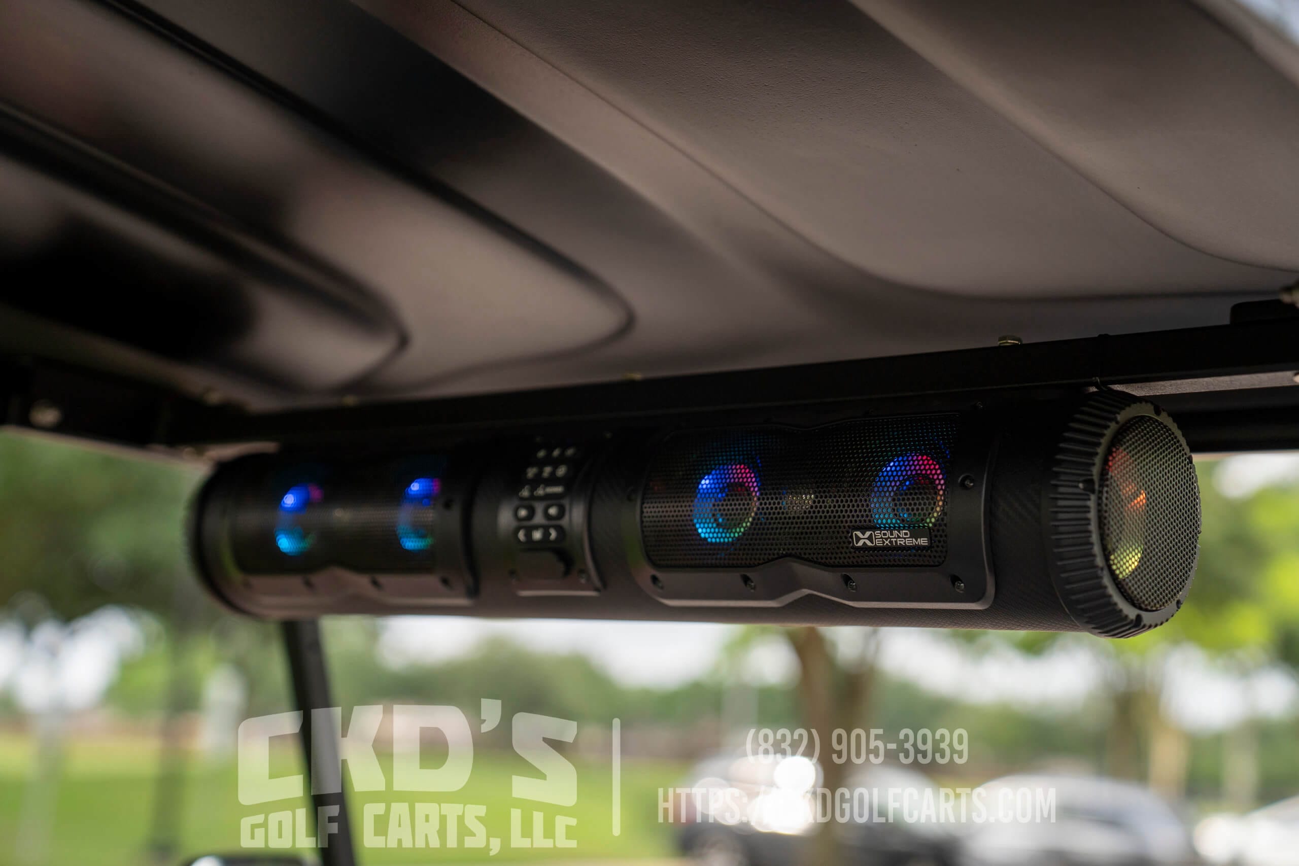 Additional features include a tinted folding “magnetic latch” windshield, a reducer for 12 volt accessories, a set of side view mirrors, the Alpha LUX LED light kit, which includes LED headlights, LED taillights, LED brake lights, turn signals, emergency flashers, daytime running lights and a horn. It also comes with a state of charge meter, a brand new Sound Extreme SE33 Bluetooth Soundbar , Sound Extreme 8″ Powered Subwoofer (for that extra bump in your trunk!),