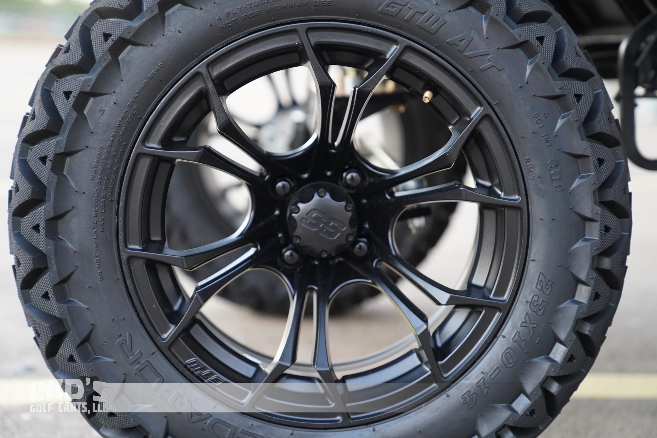 • 14″ Black GTW Spyder Wheels with 23×10-14 Predator All-Terrain Tires