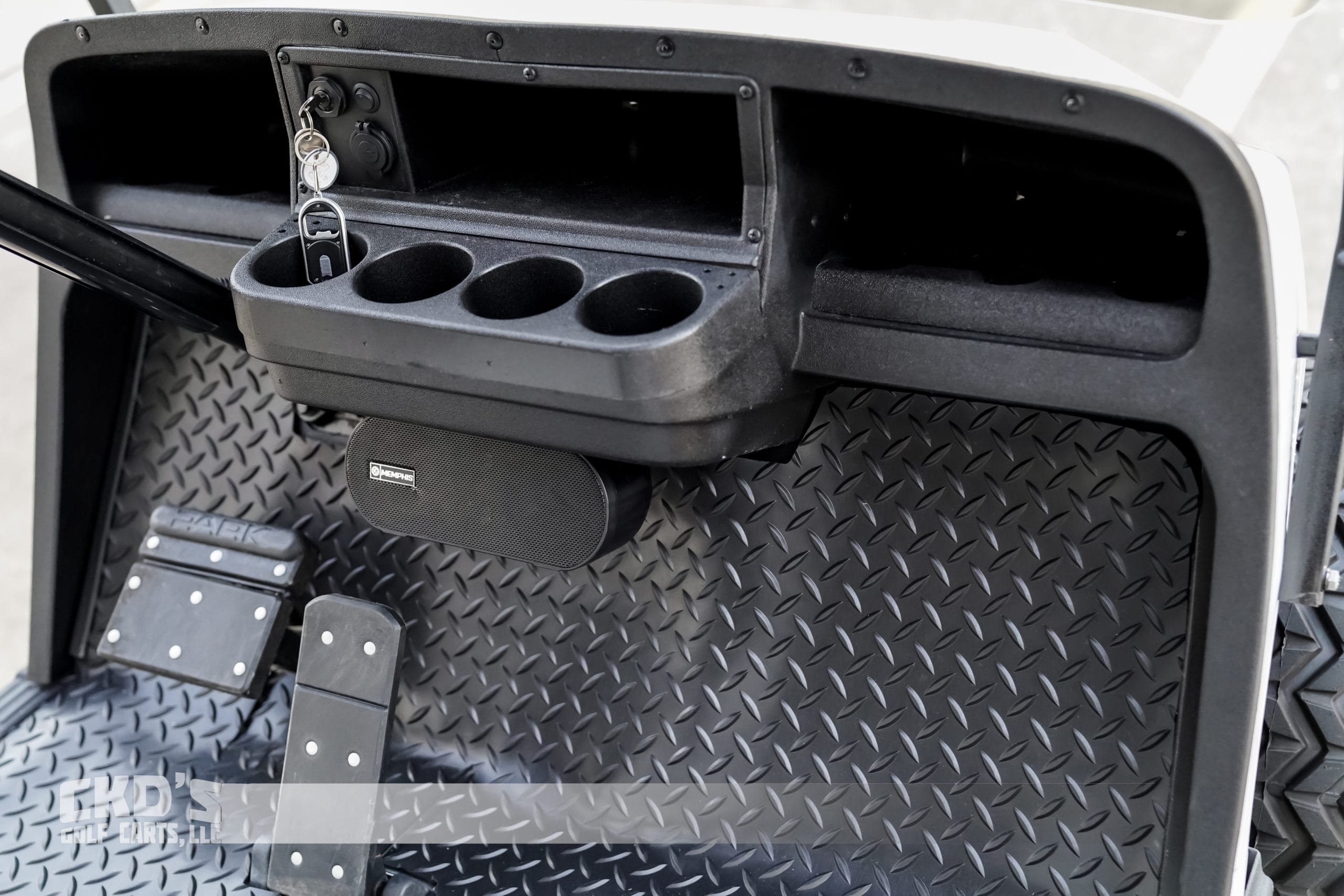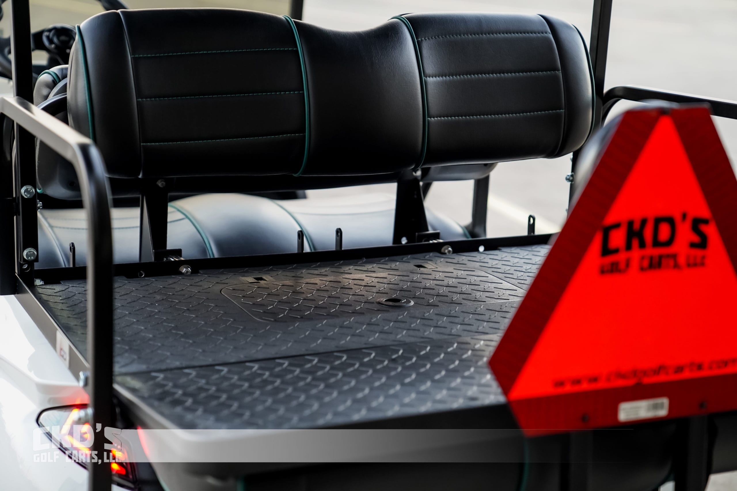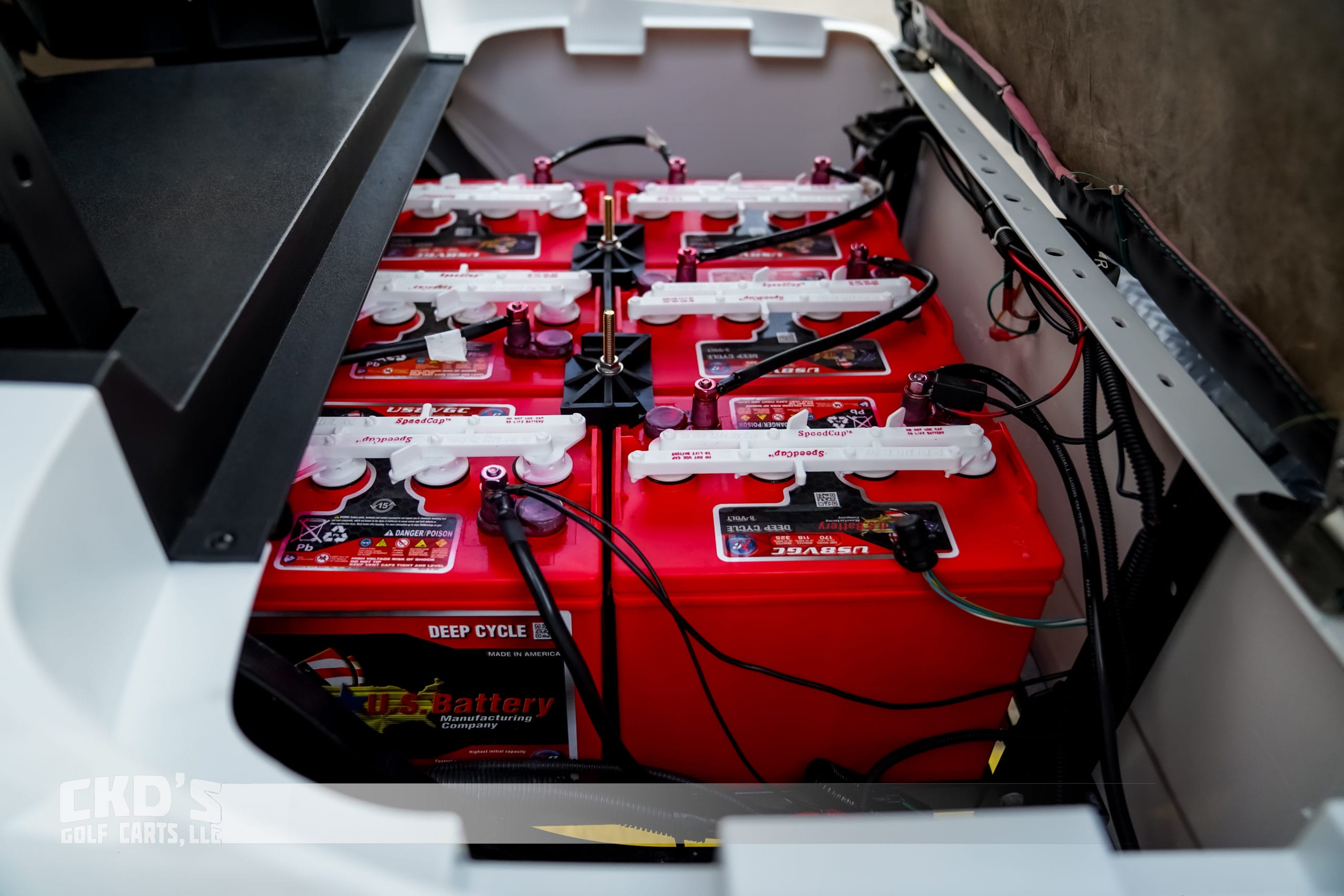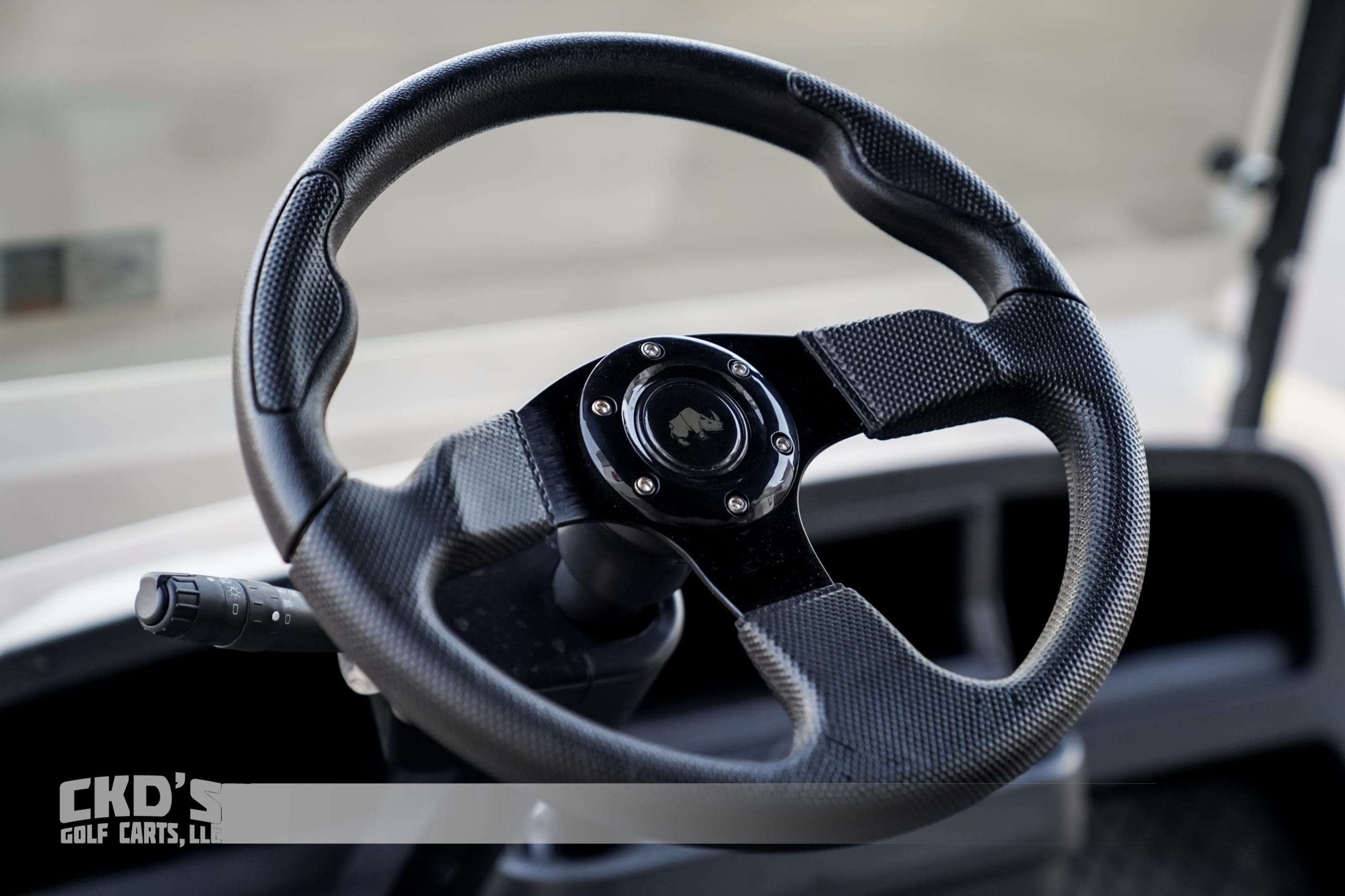 We can add any or all of the following to this cart in order to customize it further for you: Lithium Battery Pack (There are many advantages to a lithium battery pack, several of which are: No maintenance required (no batteries to fill with water), no corrosion, no acid leaking onto the floor or smelling up the garage, extended run-time (up to 40 miles on a charge!), super-fast charge time (2 to 4 hours total) and a 5-year battery pack warranty with an expected lifespan of 10 years!), new Storm brush guard, additional stereo equipment, retractable seat belts, off-road style LED light bars, underbody or roof RGB lights (that change color with an app on your phone), custom dash or anything else you can think of!