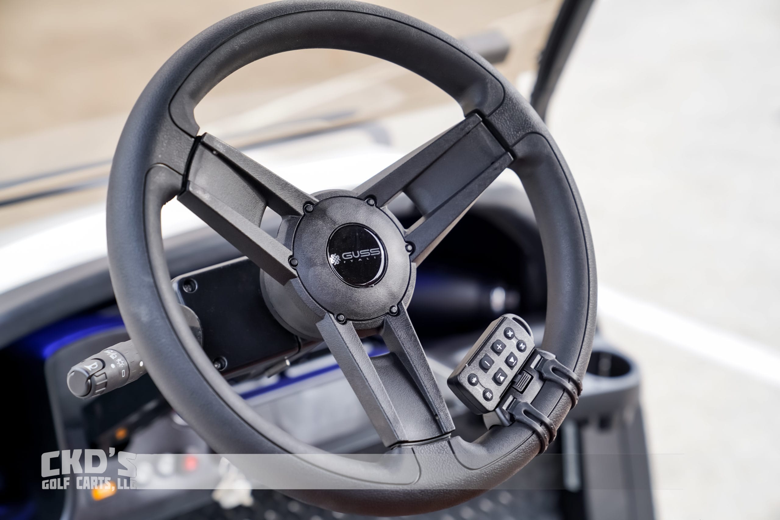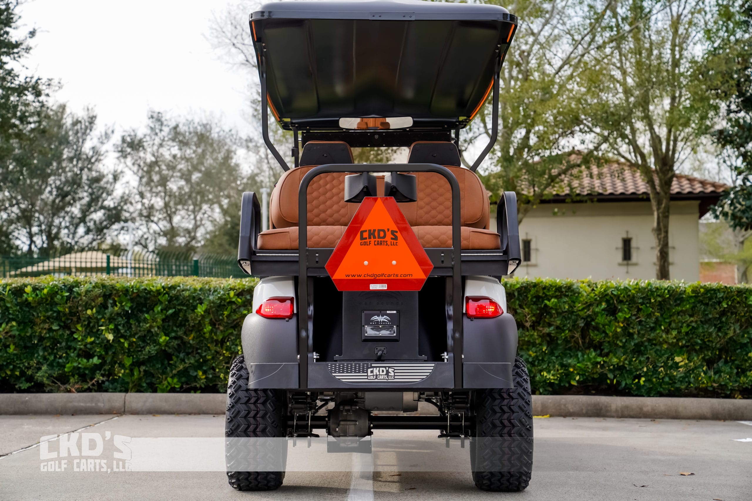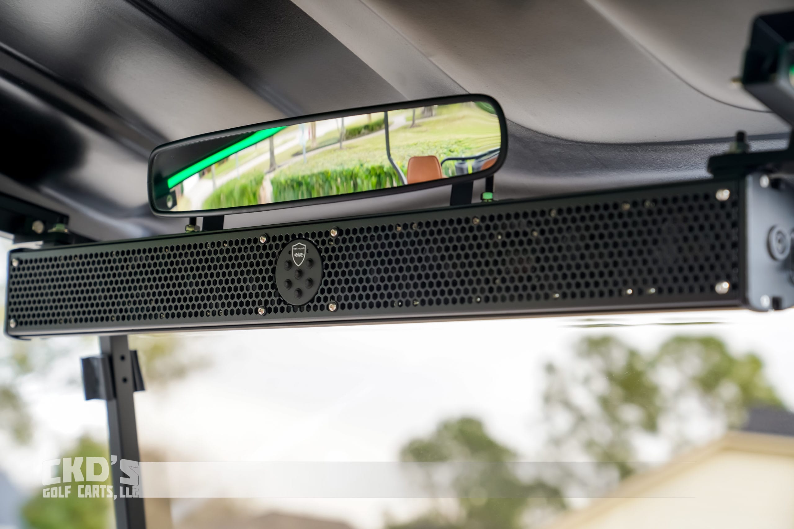 We can add any or all of the following to this cart to further customize it for you: 160Ah Lithium Battery pack (There are many advantages to a lithium battery pack, several of which are: No maintenance required (no batteries to fill with water), no corrosion, no acid leaking onto the floor or smelling up the garage, extended run-time (up to 70 miles on a charge!), super-fast charge time (2 to 4 hours total) and a 5-year battery pack warranty with an expected lifespan of 10 to 15 years!), Sentry or VIP dash, additional 12 volt power points, RGB back-lit 30″ LED light bar or anything else you can think of!