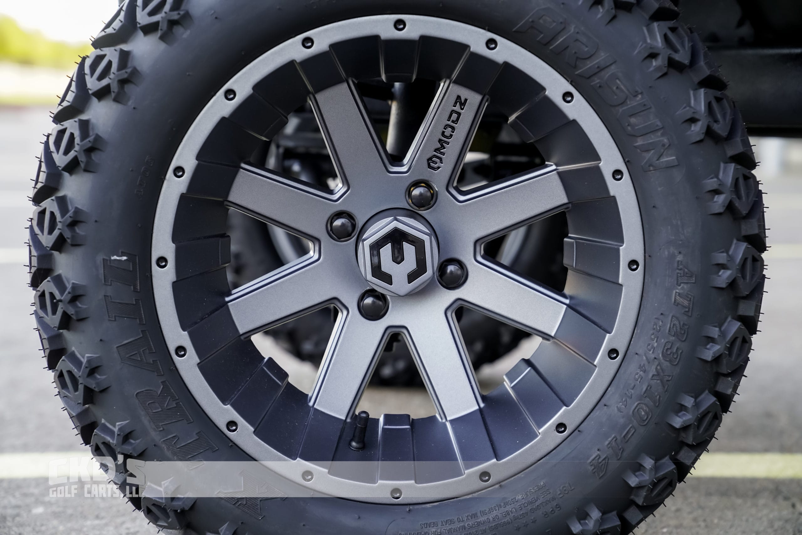 - NEW 14″ MODZ Assault GUn Metal Grey 14″ Wheels with 23″ Tires