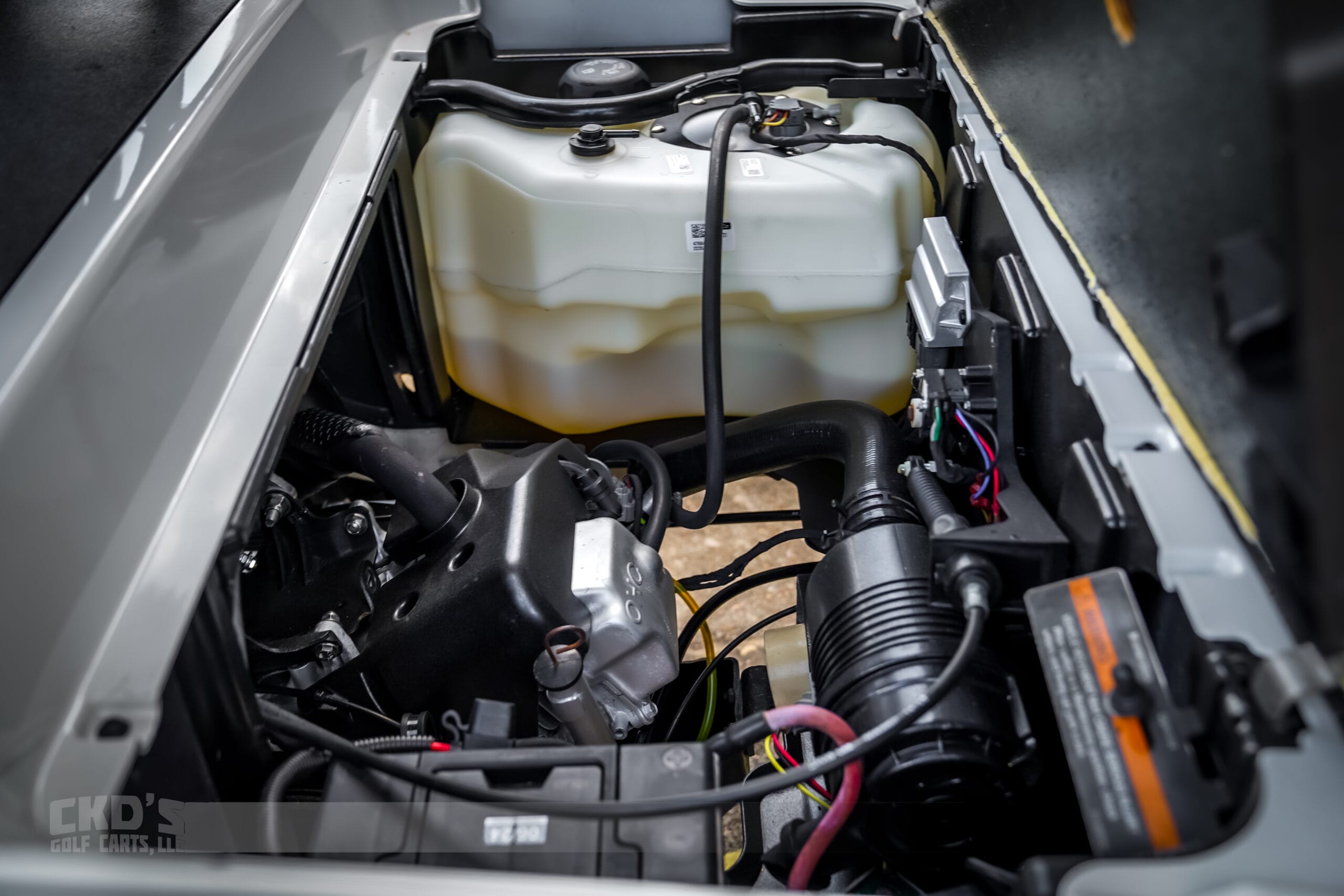 Selling a tough-looking custom Alpha body built on a like-new 2019 Club Car Tempo fuel injected gas golf cart! This cart has the newer style fuel-injected Subaru engine in it! The cart has been refurbished and has the following accessories installed: USA Made AllSports 6″ A-Arm lift, heavy-duty rear leaf springs, 14″ GTW Transformer wheels with 23″ Predator tires, custom painted Arctic White bodies, 80″ black extended top with built-in track that we can install RGB lights in. Custom Red Dot Pewter Suede Seats (like sitting on a cloud), Genesis 300 rear flip seat with black plastic (rust-free) footpan, built in hidden storage compartment/ice chest and built-in cup holders! Alpha Lux Ultimate LED light kit (includes LED headlights, LED taillights, day-time running lights, turn signals, emergency flashers and a horn), tinted folding magnetic catch windshield. Custom steering wheel and black hub adapter, overhead mirror, Wetsounds Stealth XT-12B Bluetooth soundbar that cranks, Dual USB’s, uncommon key (so no one steals your ride!), black rubber diamond plate custom floor mat and slow moving vehicle (SMV) sign included.