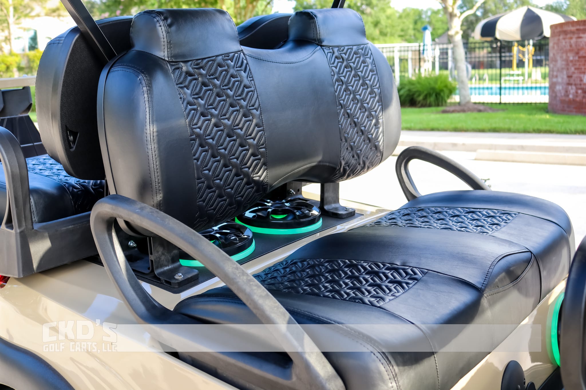 This cart is sweet but we can add any or all of the following to the cart to further customize it for you: retractable seat belts on all seats, additional LED light bars, additional 12 volt charging ports or anything else you can think of!