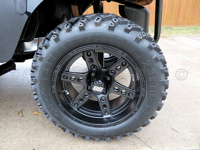 • Custom 14″ wheels with 23″ tires