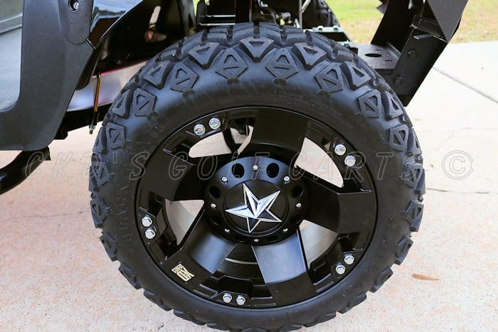 - Custom 15″ wheels with 23″ tires