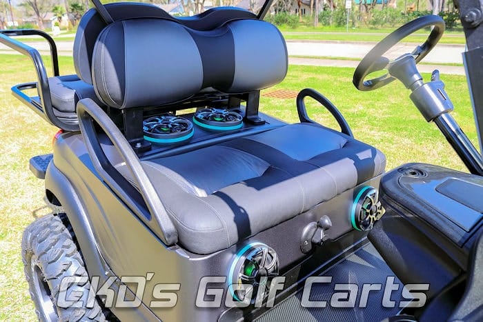 We can add any or all of the following to this cart to customize it further for you: rear-mounted 11″ LED light bar that activates when the cart is put in reverse, additional LED light bars in your choice of sizes, 12 volt power points, high torque clutch spring, our 11 inch “Monster Lift” with up to 30 inch tall tires, side-mounted rear view mirrors, any additional Wetsounds stereo equipment, a ridiculously loud “train horn” (LOL) with built-in compressor, or anything else you can think of! Ask about financing and our extended warranty option!