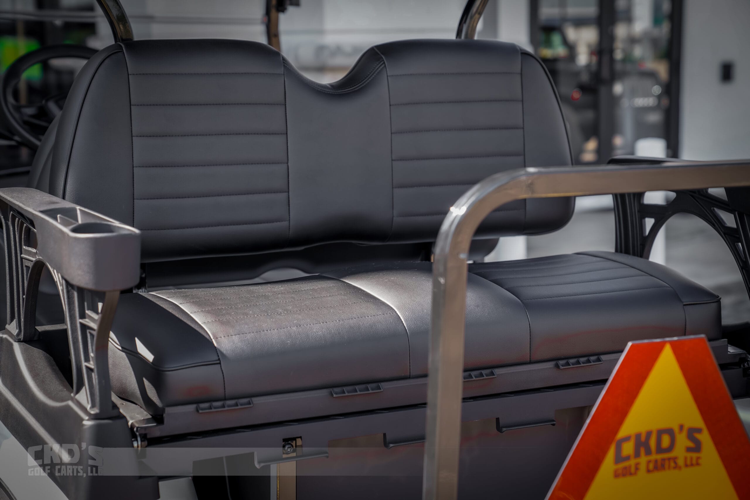 This cart is sweet as it is but we can add any or all of the following in order to customize it further for you: underbody LED lighting, off-road style LED light bars in various sizes, additional USb charging ports, any stereo equipment including head unit, speakers, amp, subwoofer, lighted speaker rings, Bluetooth soundbars from Wetsounds, Triton or Memphis or anything else you can think of!
