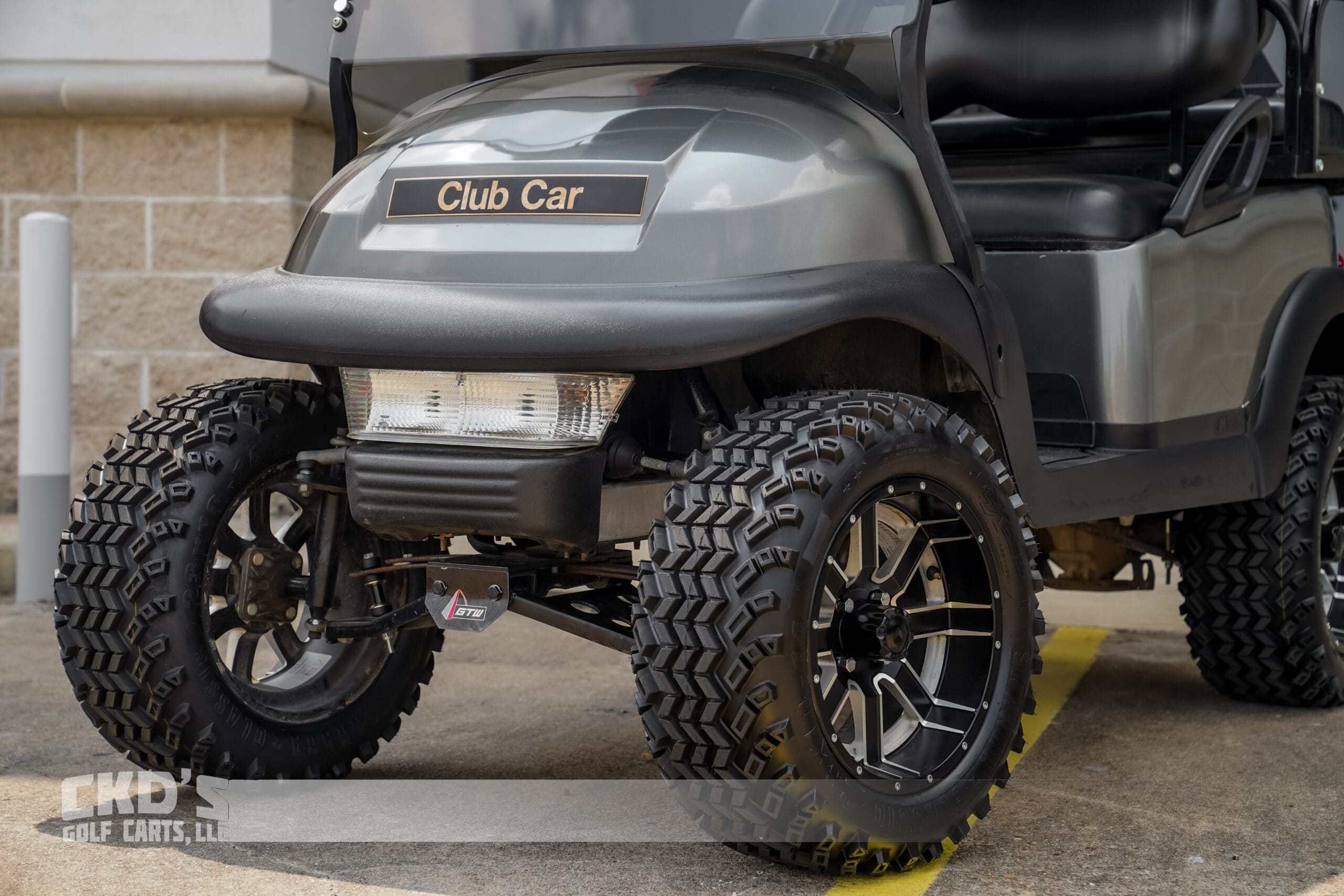 Selling a 2011 Club Car Precedent on consignment that has brand new Continental 8 Volt batteries, new 4 gauge battery cables, existing metallic grey OEM style bodies, OEM black seat upholstery, existing 6″ A-Arm Lift Kit, new heavy duty rear leaf springs, new rear spring bushings, new USA made tinted folding windshield, rear flip seat, 54″ Black top, 14″ black and machined wheels with 23″ Sahara Classic all-terrain tires, 5 panel rear view mirror, LED Ultimate Light Kit, (includes LED headlights, taillights, turn signals, brake lights and horn) and new SMV sign.
