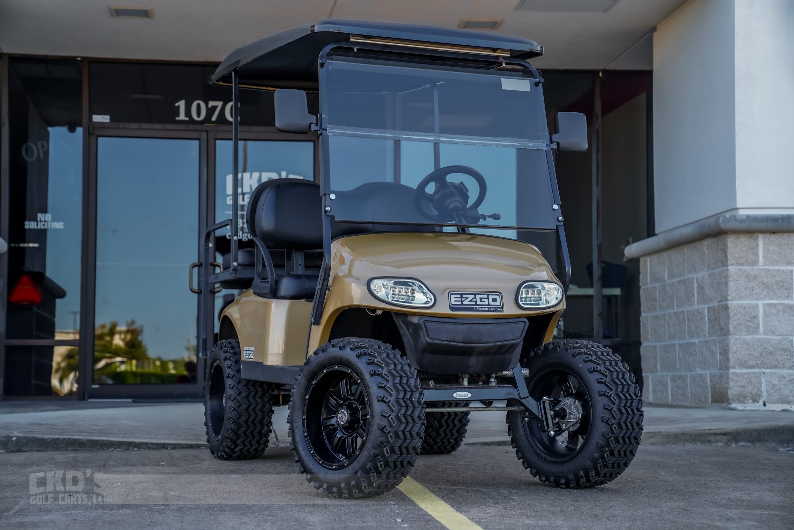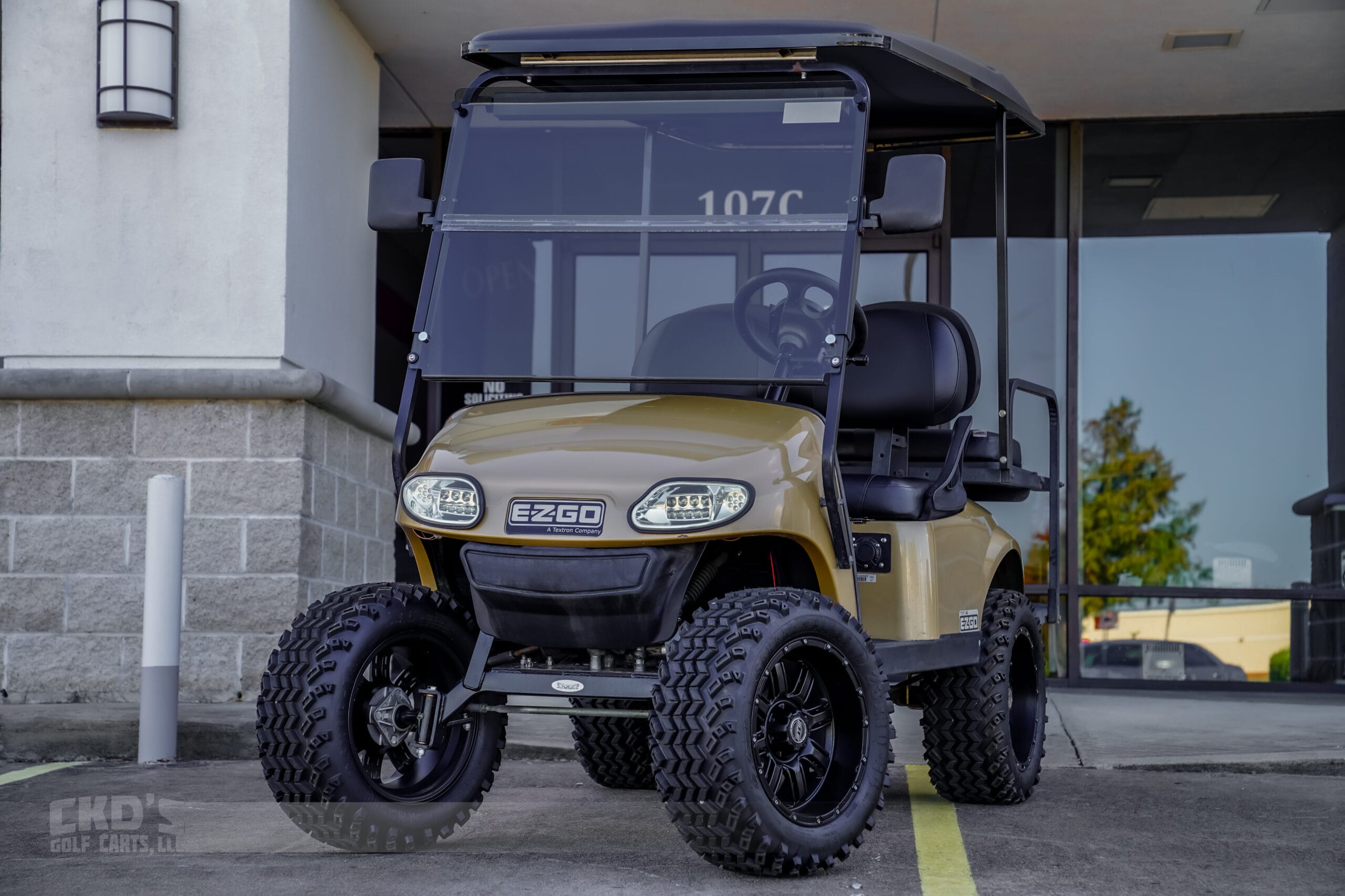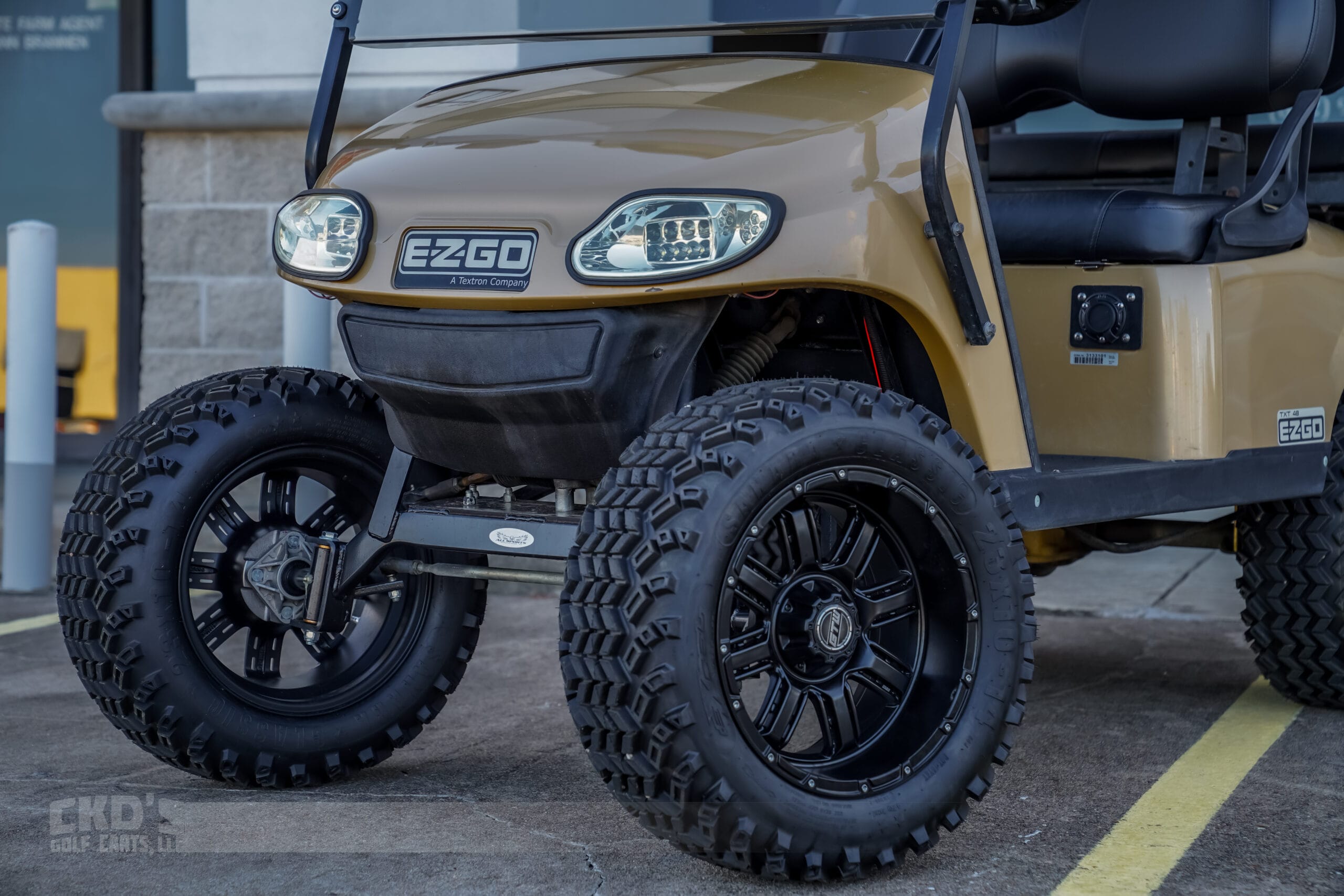 This cart is sweet but we can add any or all of the following to it to further customize it for you: Wetsounds or Sound Extreme Bluetooth soundbars in various sizes, full on Wetsounds stereo system with Bluetooth, amplifier, speakers, RGB LED light rings and a sub woofer, RGB lights in the roof and underbody (that change colors with an app on your phone), our Monster 7″ lift kit that we can install up to 28″ tall tires on, LED light bars in various sizes or anything else you can think of!
